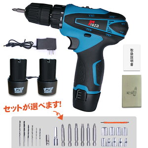 【あす楽 楽天1位 バッテリー2個付 】 電動ドライバー セット 電動ドリル 充電式 コードレス 小型 12V大容量バッテリー 最大トルク25N.m 無断変速 正逆切替 18+1段階トルク調節 DIY家具組み立て電動工具 LED照明ライト付き 安全ロック 強力 片手 軽量